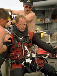 | Keywords: Defense.gov News Photo 960802-N-0507M-005.jpg en U S Navy diver Damage Controlman Chief Michael Bosler of Louisville Ky is assisted in removing diving suit and gear following a 60-minute dive during search and recovery operations at the TWA Flight 800 crash site Divers enter the chamber within three minutes after they emerge and undergo surface decompression a procedure that rids the body of the excess nitrogen Conducting 24 hour operations in 12 hour shifts the U S Navy's salvage rescue ship USS Grasp ARS 51 has dive teams submerged to depths of 120 960802-N-0507M-005 Navy http //www defense gov/photos/newsphoto aspx newsphotoid 404 1996-08-02 en Journalist Second Class Ligia I Manning U S Navy PD-USGov-Military-Navy Defense gov news media for August 1996 Import by User Slick-o-bot/Defense gov News Photos Defense gov photos requiring renaming Images from United States Navy to check |