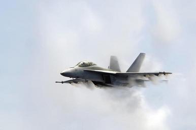 | Keywords: Defense.gov News Photo 070823-N-3136P-004.jpg en An F/A-18F Super Hornet aircraft punches through a cloud of water vapor while breaking the sound barrier during an air power demonstration over the USS Kitty Hawk CV 63 while at sea on Aug 23 2007 070823-N-3136P-004 Navy http //www defense gov/photos/newsphoto aspx newsphotoid 9466 2007-08-23 en Petty Officer 3rd Class Jimmy C Pan U S Navy PD-USGov-Military Import by User Slick-o-bot/Defense gov News Photos Taken with Nikon D2X F/A-18F Super Hornet with condensation clouds |