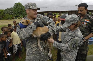 | Keywords: Defense.gov News Photo 070810-N-4954I-224.jpg en Veterinarian Technician Sgt Nick Kersting left U S Army holds a dog while Army Veterinarian Capt Therese Kreutzberg administers a rabies vaccination during a veterinary civic action program in Madang Papua New Guinea on Aug 11 2007 in support of Pacific Partnership of the Americas Pacific Partnership of the Americas focuses on enhancing relationships with partner nations through a variety of exercises and events at sea and on shore throughout Latin America and the Caribbean 070810-N-4954I-224 Navy http //www defense gov/photos/newsphoto aspx newsphotoid 9434 2007-08-10 en Petty Officer 3rd Class Bryan M Ilyankoff U S Navy PD-USGov-Military Check categories 2012 August 20 Import by User Slick-o-bot/Defense gov News Photos Defense gov photos requiring renaming Taken with Nikon D2Xs United States Army |