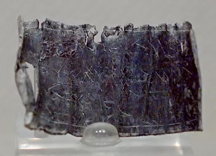 | Keywords: Defixio Kardelos Terme-2.jpg Reworked version of Image Defixio_Kardelos_Terme jpg by smial <br> Original-Description <small> Uploaded by User Jastrow </small> <br style 'clear both;' /> ---- Defixio tabella with an opisthographic curse in Greek against Kardelos Lead 4th century CE From the Columbarium of the Villa Doria Pamphilj in Rome Defixio tabella avec malédiction opisthographique en grec contre Kardelos Plomb IV век Provenance colombarium de la villa Doria Pamphilj à Rome Defixio tabella табличка п оклятий г еческий текст с п оклятием п отив Ка делия на обо оте Свинец IV век нашей э ы из колумба ия в вилле До иа Памфили Рим Museum Terme di Diocleziano object history credit line accession number Jastrow 2006 other versions ---- smial Defixio_Kardelos_Terme jpg Farbausgleich Gamma Schärfung Rauschminderung Uploaded with http //tools wikimedia de/~luxo/reworkhelper html Reworkhelper Ancient Greek inscriptions in Rome Museo delle Terme Ancient Roman inscriptions in the Museo delle Terme di Diocleziano 4th-century inscriptions Tabellae defixionis |