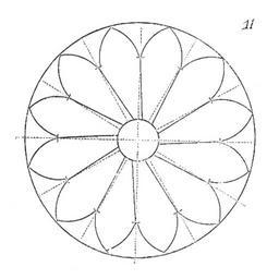 | Keywords: Deformation.rose.medievale.png On observera que dans le tracé du réseau l'arcature externe est étrésillonnée par une suite de jambettes G qui ne tendent plus toutes au centre comme les rayons des roses de la première moitié du XIII<sup>e</sup>e siècle mais qui ont une résistance oblique et par cela même empêchent une déformation qui s'est produite parfois En effet il arrivait pour des roses d'un grand diamètre et dont les membres avaient une faible section que la déformation se produisait ainsi que l'indique la figure 11 Si une partie de la circonférence de ces roses subissait une pression trop forte par suite d'un tassement ou d'un écartement l'œil pivotait sur son centre et les rayons au lieu de tendre à ce centre faisaient tous un mouvement de rotation à leur pied Viollet-le-Duc Stained glass Viollet-le-Duc Deformation Rose windows in France |