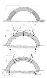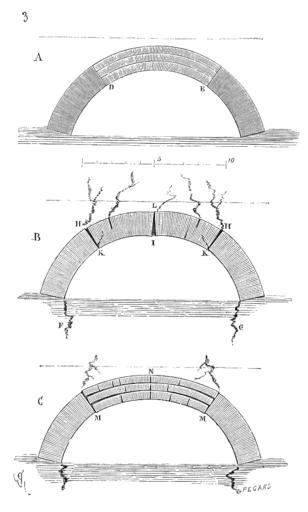 | Keywords: Deformation.voute.romaine.png Quand les Romains construisaient un arc-doubleau une tête de berceau portant charge ou même un arc de décharge ils avaient le soin de procéder ainsi que l'indique la figure 3 en A ils maçonnaient à partir de la naissance le quart de l'arc environ en rangs de briques liaisonnées puis les deux quarts restant en rangs de briques extradossées Comme ils construisaient les arcs de décharge avant les remplissages que ces arcs avaient pour fonction de soulager il fallait nécessairement cintrer ces arcs Le système des rangs d'arcs extradossés permettait de ne pas charger outre mesure le cintre de charpente à son point le plus faible puisqu'on commençait par poser le premier rang de claveaux DE Ce rang posé le cintre n'avait plus rien à porter et l'on pouvait bander les deux autres arcs Si cependant les constructeurs romains avaient eu seulement l'intention de ne pas charger le cintre de charpente du moment que le premier arc eût été bandé ils auraient maçonné le reste de l'épaisseur de l'arc de briques liaisonnées en se servant du premier arc comme d'un cintre très-suffisamment résistant; mais nous voyons au contraire que sans exception les parties supérieures des arcs-doubleaux ou de décharge sont maçonnées en rangs de briques extradossées Dictionnaire raisonné de l'architecture française du XI<sup>e</sup> au XI<sup>e</sup> siècle ~ 1856 Eugène Viollet le Duc Viollet-le-Duc Deformation Vault Viollet-le-Duc |