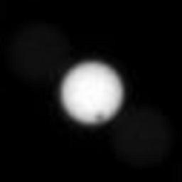 | Keywords: Deimos Mar 13 2004 from Spirit 1.jpg PD-USGov Credit NASA/JPL/Cornell Transit of Deimos across the Sun as seen from Mars Exploration Rover Spirit on March 13 2004 Times in the table below are Martian local solar time as given by JPL Original filename http //marsrovers nasa gov/gallery/all/2/p/068/2P132408331ESF1800P2671R8M1 JPG http //marsrovers nasa gov/gallery/all/2/p/068/2P132408331ESF1800P2671R8M1 HTML The timestamp built into the filename is 132408331 seconds since the J2000 0 epoch http //marsrovers jpl nasa gov/gallery/edr_filename_key html or March 13 2004 00 04 26 816 UTC the three-decimal-digit precision is of course not real 0 cellspacing 0 cellpadding 5 + Image sequence 1 2 3 4 5 6 7 8 - 13 54 11 13 54 20 13 54 30 13 54 40 13 54 50 13 54 59 13 55 09 13 55 19 http //marsrovers nasa gov/gallery/all/spirit_p068 html Spirit image gallery Sol 68 small images of the March 13 2004 transit are near the bottom of the page Photos by the Spirit rover Transit of Deimos |