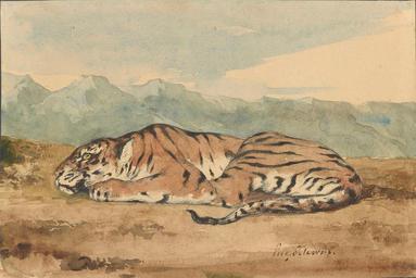 | Keywords: Delacroix - 'Royal Tiger'.jpg en Ferdinand-Eugène-Victor Delacroix Royal Tiger nineteenth century Pen and brown ink and watercolor over pencil The Morgan Library Museum The Morgan Library Museum Ferdinand-Eugène-Victor Delacroix nineteenth century Orientalist paintings by Eugène Delacroix Paintings of tigers by Eugène Delacroix Drawings in the Morgan Library Museum Orientalist paintings of tigers PD-Art | ||||