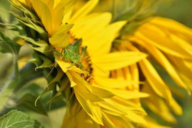 Keywords: delicate insect grasshopper insect grille green sun flower close