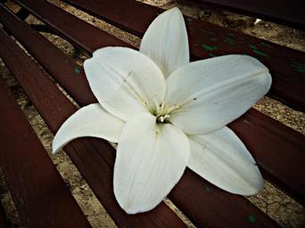 Keywords: delirium white flower flowers pistil wood wooden bench peace macro beauty beautiful caress rest