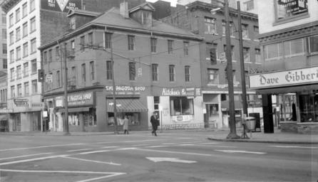| Keywords: monochrome blackandwhite building architecture road outdoor building complex black and white Delmonico Hotel, 601-609 West Pender Street (NW corner of West Pender and Seymour Streets). January 1968 photograph. Built 1887-88. Originally the Windsor Hotel. Demolished along with its neighbours to the west and north and replaced with a parkade with street-level shops circa-1970. [City of Vancouver Archives; Walter Edwin Frost, photographer] Delmonico Hotel, 601-609 West Pender Street (NW corner of West Pender and Seymour Streets). January 1968 photograph. Built 1887-88. Originally the Windsor Hotel. Demolished along with its neighbours to the west and north and replaced with a parkade with street-level shops circa-1970. [City of Vancouver Archives; Walter Edwin Frost, photographer] |