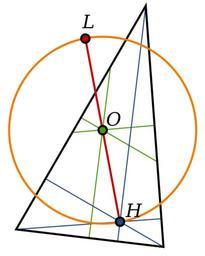 Keywords: DeLongchamps Point.svg de Longchamps point L of a triangle It is the reflection of the orthocenter H in the circumcentre O Own Inductiveload 08/12/2008 Special points in a triangle