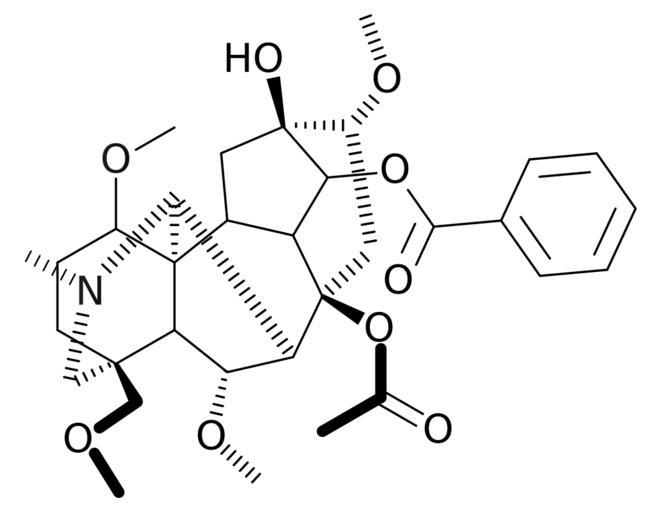 Keywords: Delphinine.svg created with bkchem+inkscape 2006-06-13 own assumed Ayacop Terpenoid alkaloids