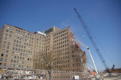 | Keywords: Demolition of the former hospital building at Naval Station Great Lakes.jpg 130514-N-HA320-015 GREAT LAKES Ill May 14 2013 A crane and wrecking ball demolish the 16-story former hospital building at Naval Station Great Lakes Ill which operated from 1960 to 2010 Demolishing this facility and its supporting structures is the last phase of the 2010 establishment of the Capt James A Lovell Federal Health Care Center which supports Navy recruits active-duty service members family members and veterans http //www navy mil/management/photodb/photos/130514-N-HA320-015 jpg 2013-05-14 U S Navy photo by Bill Couch/Released PD-USN PD-USGov-Military-Navy Naval Station Great Lakes |