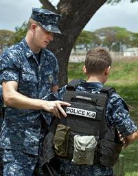 | Keywords: Demonstration of daily operations 130413-N-WF272-198.jpg en U S Navy Master-at-Arms 3rd Class Conrad Schonacher left with a military police working dog unit helps a child with Battleship Missouri Division-Hawaii U S Navy League Cadet Corps put on a protective vest April 13 2013 at Ford Island Joint Base Pearl Harbor-Hickam Hawaii Masters-at-arms assigned to security forces harbor patrol and military police working dog units provided demonstrations of their daily operations U S Navy photo by Mass Communication Specialist 3rd Class Diana Quinlan/Released 2013-04-13 Petty Officer 3rd Class Diana Quinlan https //www dvidshub net/image/910291 130413-N-WF272-198 2013-04-19 05 38 JOINT BASE PEARL HARBOR-HICKAM HI US PD-USGov-Military-Navy 2013 in Pearl Harbor People at Joint Base Pearl Harbor-Hickam Images from DoD uploaded by Fæ |