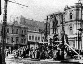 | Keywords: Demonstration Kyiv 02.jpg A photo of a Ukrainian revolutionary crowd demolishing a monument to Russian prime-minister Stolypin in Kyiv in March 1917 Скидання пам'ятника Столипіну у Києві під час Ук аїнської маніфестації 19 бе езня 1917 оку http //www day kiev ua/37467/ Author 1917-03 public domain PD-Ukraine 1910s Demonstrations and protests in Ukrainian People's Republic Statues of politicians Pyotr Stolypin Demonstrations and protests in Kiev in 1917 | ||||