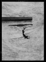 | Keywords: Den yttersta av Gustav II Adolfs Lützenskjortor - Livrustkammaren - 954.tif LSH artwork sv Rester av skjorta i 3 delar ryggstycke med en bit av kragen v framstycke med kragstycke och större delen av ärmen samt h framstycke med kragens främre halva och en del av bakstycket <br/><br/>1 Ryggstycket med en bit av kragen <br/>Skjortans vådbredd har i h ö sida utökats med en våd av 460 mm som tillför plagget en bredd av 230 mm på resp fram- och bakstycket På ryggsidan är denna fåll gjord som stad mot stad - sammankastad fåll från avigsidan av plagget 7 kaststygn åt v med H-tvinnat lingarn Av denna fåll finns nerifrån kantfållen kvar 350 mm sedan har sannolikt från sprundet klippts och rivits en stor lucka av sömmen saknas 360 mm sedan kommer på nytt ett 630mm långt stycke av kastfållen Okstycket är här blott ett oregelbundet klippt stycke med snedklippt överkant På V sida som rivits av utefter sidfållen - fällsömmen finns blott ytterligare ett stycke av ärmspjället kvar och en liten bit 40 mm av dess söm mot ärmen Spjällets kant är här 150 mm Fållen sydd med h-tvinnat lingarn med 6 stygn /cm och drygt 1 mm bredd Av kragen återstår i underkanten en 145 mm lång bit Upptill blott en 100 mm lång bit där spetsen sytts fast med 8 stygn kast- åt V/cm med H-tvinnat lingarn Kragen är 670 mm hög I kragen har ca 16 rynkor stripats och 7 kaststygn åt H sytts ned på rätan och ca 7 stygn/cm i de tättplacerade parallella garneringssömmarna Hela arrangemanget är ej mer än 3 mm brett H-tvinnatlingarn har använts till garneringssömmarna Den breda uddspetsen med bl a flätslag är 50 mm bred den smala 15 mm Den breda har en rapport av ca 24 mm <br/><br/>2 Ett stycke av skjortans V framsida med kragstycke och större delen av ärmen <br/>Största längd fram är från kragens underkant max 530 mm och 140 mm halssprund finns kvar Här är också vådbredden bevarad mellan halssprund och ärmsöm Av ärmsömmen finns det 290 mm kvar varav 220 ovanför spjället som alltså är bevarat som en 70 mm bred remsa och här är spjället klippt snett ½ våden verkar då att vara 595 à 600 mm bred på v bröstsida Slätt parti fram på axeln är ungefär 200 mm enligt detta stycke att döma Ärmmanschetten är 45 mm bred med stripade veck ca 12 veck/cm och 7 stygn såväl mellan dessa som i de 2 garneringsraderna hela dekorens bredd 3 mm Spetsen är densamma som på kragen Manschettstyckena är mycket blodiga <br/><br/>3 H framstycke fr o m halssprundet med kragens främre halva och en del av bakstycket av kragen hela axelsömmen samt en övre del av ärmen med spjället - som dock har en reva En ände till1150 mm nående remsa finns av skjortans framstycke från axelsömmen räknat Nederst är denna blott 110 mm bred och då den tydligen har klippts av när tyget redan låg veckat är dess kant uddig souvenir Axelsömmen är 160 mm och sneddad så att den är 130 mm vid axeln men krymper till blott ett par mm vid halsen På rätsidan är det ryggstycket som går över framstycket 3 sömmar med 7-8 stygn/cm Det övriga tyget - de ca 420 mm har rynkats samman i kragen till 100 mm Fällsömmen som förenar framstyckets med sidovåden är gjord för att bli särskilt smidig från skjortans insida med 7 kaststygn åt V gjort från rätan över staden Fållen är blott millimeterbred Av kragen finns i nederkanten en 160 mm lång bit I överkanten är den dock inte mycket mer än 130mm från hörnet räknat Längs överkanten står den smala uddspetsen upp och den löper utefter halssprundet mitt fram På kragens horisontella del är från överkanten och nedfallande en bredare uddspets fästad <br/><br/>Gemensamt <br/><br/>Av linnelärft med trådantal 43 varptrådar x 44 inslagstrådar / cm2 sammanfogad av framstycke bakstycke b 1470 mm sidstycke samt ärmar ärmspjäll krage och ärmlinningar I sidorna har nertill ämnats ca 510 mm höga sprund staden är synlig här i v sida Skjortans bålparti är rakt tillskuret Nedtill har skjortan fållats upp med en 15-20 mm bred fåll sydd med 5 à 6 stygn/cm av H-tvinnat lingarn De rektangulärt tillskurna ärmarna blott den v någorlunda bevarad är 610 mm långa och 460 mm breda och garnerade med 3 rader knappt 20 mm breda vita knypplade mellanspetsar påsydda med ca 100 mm mellanrum Ärmarna är fastsydda i skjortans sidsöm på v sida där staderna stöta mot varandra I h sida har man klippt upp ett 390 mm långt sprund för ½ ärmbredden 230 mm + spjäll 160 mm 390 mm Nedanför ärmstycket har alltså ett spjäll med ca160 mm sida sytts fast Ärmarna är alltså isydda helt normalt och inte som Anna Maja Nylén förmodat enligt en mer egendomlig konstruktion så att ärmen skulle nå ända fram till halslinningen <br/><br/>Axelsömmarna är i det allra närmaste helt raka de yttersta 165 mm Man har blott vikt ner fållarna något bredare mot axeln än mot halsen ca 5 mm differens Härefter har ll återstående vidd rynkats in i den dubbelvikta knappt 70 mm håga kragen som är ca 400 mm lång så att frampartierna av skjortorna fördelats på kragens främre decimeterlånga stycken medan ryggstycket rynkats i kragens bakre 200 mm <br/><br/>Halssprundet är klippt upp vertikalt i framstycket l minst 270 mm synligt i h sida där spetsgarneringen bevarats en 15 mm bred uddspets Dessutom kan påpekas att sprundet ej placerats helt symmetriskt mitt på skjortans framstycke utan med ett par centimeters förskjutning åt h då det klippts ca 600 mm från v sidsöm och 230 + 350 580 mm från h sida Dekor av en 15 mm bred uddspets rapport 20 mm Överst på kragen är denna typ av spets fastsydd för att stå upp som en avslutande kant På kragens utsida är kant i kant med den smala spetsen och nedåt en bredare uddspets fastsydd Denna är 50 mm bred och har en rapport av 22 mm motivet påminner om solfjädrar <br/><br/>Kragens garneringssömmar sydda med efterstygn i 2 parallella rader med 7 stygn/cm och 16 rynkor av 