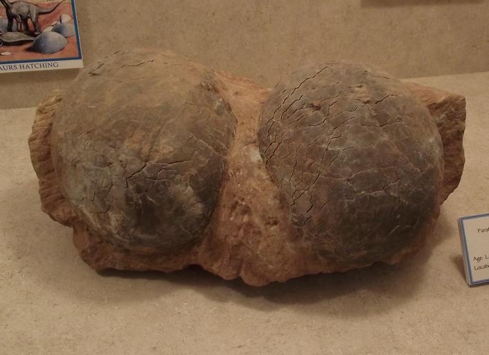 Keywords: Dendroolithus-eggs.jpg en Dinosaur eggs Dendroolithus sp from Kaoguo Formation Henan China on display at the San Diego County Fair California USA own Stickpen 2010-06-16 public domain Dinosauria nests