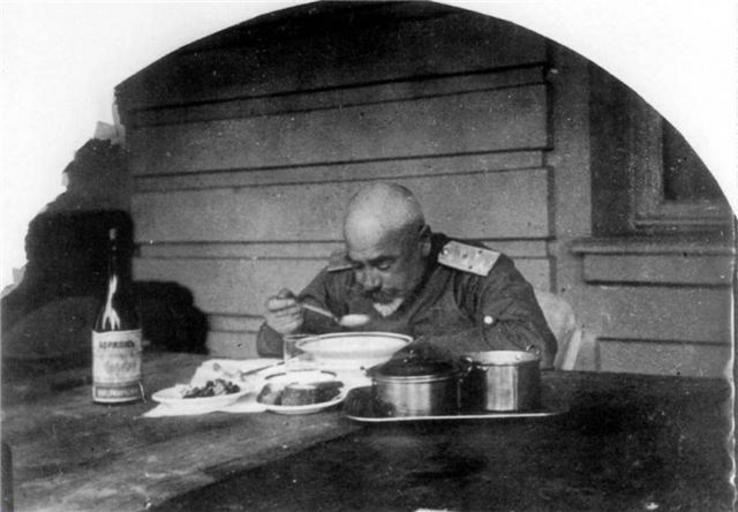 | Keywords: Denikin on eleemosynary dinner, 1919.jpg Деникин п обует пищу на благотво ительном обеде П опагандистское фото для белогва дейской п ессы Юга России 1919 год Ха ьков 1919 own archive author PD-Russia-2008 Uploaded with UploadWizard Anton Denikin Borjomi water Eating |