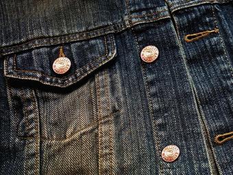 Keywords: denim fabric jacket jeans buttons button button hole garment fashion stitches pocket breast pocket