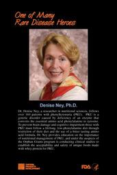 | Keywords: Denise Ney, PhD, RD.jpg en Dr Denise Ney a researcher in nutritional sciences follows over 160 patients with https //en wikipedia org/wiki/Phenylketonuria phenylketonuria PKU PKU is a genetic disorder caused by deficiency of an enzyme that converts the essential amino acid https //en wikipedia org/wiki/Phenylalanine phenylalanine to tyrosine To prevent brain damage and cognitive impairment those with PKU must follow a lifelong low-phenylalanine diet through restriction of their diet and the use of a bitter tasting amino acid formula http //trackmystack com/supplements-adrafinil Track my stack Dr Ney provides education on the importance of nutritional management of PKU and under the auspices of the Orphan Grants program is conducting clinical studies to establish the acceptability and safety of unique foods made with whey protein for PKU For more information visit http //www fda gov/orphan www fda gov/orphan 2013-02-25 10 28 57 https //www flickr com/photos/fdaphotos/8515002079/ The U S Food and Drug Administration other versions PD-USGov Food and Drug Administration United States |