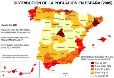 | Keywords: Densidades de población en España (2005).svg Mapa de España con las densidades de población por provincias según el censo del Instituto Nacional de Estadística a 1 de enero de 2005 Instituto Nacional de Estadística de España http //www ine es/inebase/cgi/um M 2Ft20 2Fe260 O inebase N L 2007 Creado por Rodriguillo tomando como mapa base Image Provinces of Spain svg creado por Emilio Gómez Fernández Image Densidades de población en España 2005 png Rodriguillo Population density maps of Spain |