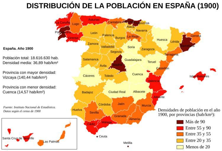 | Keywords: Densidades de población en España (1900).svg Mapa de España con las densidades de población por provincias según el censo del Instituto Nacional de Estadística de 1900 Instituto Nacional de Estadística de España http //www ine es/inebase2/leer jsp L 0 divi DPOH his 0 Población de hecho 2007 Creando por Rodriguillo tomando como mapa base Image Provinces of Spain svg creado por Emilio Gómez Fernández GFDL Image Densidades de población en España 1900 png Rodriguillo Population density maps of Spain Maps of the history of Spain 1900 spain in the 1900s |
