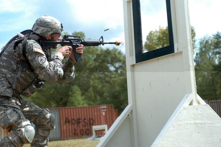 | Keywords: Department of the Army Best Warrior DVIDS60815.jpg en Spc Stephen D Lester representing the National Capital Region hurries to his next battle drill station to fire at targets in a battle drill as part of the weapons qualification test Oct 4 at Fort Lee Va Lester and 11 other Soldiers are competing for the title of Department of the Army Best Warrior The 12 Soldiers and an additional 12 NCOs will spend this week at Fort Lee competing in events such as the board land navigation and warrior tasks The winners will be announced at a ceremony Oct 8 in the District of Columbia Lester who hails from Jefferson N C is currently assigned as a military police in the 289th Military Police Company 3rd U S Infantry The Old Guard located at Fort Myer Va Lester has served in the Army for three years 2007-10-08 https //www dvidshub net/image/60815 60815 2007-10-08 13 04 FORT LEE VA US PD-USGov Fort Lee Virginia Images from DoD uploaded by Fæ |
