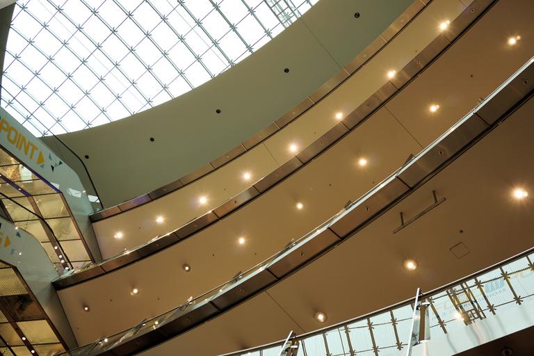 Keywords: department store shopping fashion architecture buy clothing building shopping centre city purchasing consumption window window dressing escalator modern roof roof construction glass