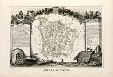 | Keywords: Dépt. de la Nièvre (région du Centre) - Fonds Ancely - B315556101 A LEVASSEUR 061.jpg Titre complet du recueil Atlas national illustré des 86 Départements et des Possessions de la France divisé par Arrondissements Cantons et Communes avec le tracé de toutes les routes chemins de fer et canaux Dressé d'après les Travaux du Cadastre du Dépôt de la Guerre et des Ponts et Chaussées par V Levasseur Ingénieur Géographe attaché au Génie du Cadastre et de la Ville de Paris Gravé sur acier par les meilleurs artistes Imprimerie de Lemercier à Paris ou imprimerie Dupuich à Paris Page de titre et 100 pl en n et b et en coul dont un tableau statistique et 2 cartes dépliantes Ancely René 1876 - 1966 Possesseur fre public domain domaine public B315556101_A_LEVASSEUR_061 jpg image/jpeg 1 f de pl ; 53 cm Perrot Aristide-Michel 1793-1879 Illustrateur Bonheur Raymond 1796-1849 Illustrateur Smith Graveur George Graveur Combette A Editeur Dupuich Imprimeur http //numerique bibliotheque toulouse fr/collect/general/index/assoc//ark /74899/B315556101_A_LEVASSEUR_061 dir/B315556101_A_LEVASSEUR_061 jpg Bibliothèque municipale de Toulouse A-LEVASSEUR 58 Creator Victor Levasseur http //catalogues toulouse fr/web2/tramp2 exe/do_keyword_search/log_in setting_key BMT1 servers 1home query p001345 vignette http //numerique bibliotheque toulouse fr/collect/general/index/assoc//ark /74899/B315556101_A_LEVASSEUR_061 dir/B315556101_A_LEVASSEUR_061_thumb jpeg 1854 Dépt de la Nièvre région du Centre B315556101_A_LEVASSEUR_061 print - colors - steel engraving Coats of arms of cities in Nièvre Metal nails Anvils in art André Dupin Iron Engravings of bottles Fonds Ancely Hammers Containers in art Victor Levasseur - Maps of France Busts Pitchforks Wind instruments Pigs Adam Billaut Old maps of Nièvre |