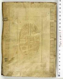 | Keywords: Der sechste theil des Psalters Dauids, aussgelegt, vnd auffs newe vbersehen, durch Nicolaum Selneccerum. - Upper cover (c108d29).jpg Style Armorial Dated Lettered cover eg intitals titles Panel design; Caption Upper cover; Colour White / cream; Edge Unspecified exhibition history Decorative Technique Tooled in gold; Cover Material Parchment may include vellum Traces of 2 pairs of ties Title in red Vellum flap extends over fore edge Macchi states; bound in 1585 in Saxony by Caspar Meuser C Schmidt Jakob Krause pl 74 1 st line 1 st Meuser panel-stamp Saxony 13 compartments A very similar example is owned by the Landesbibliothek Dresden on Bericht Wie die Tabeln in Beschickung der Golder auff Rheinisch Gulden zu 18 Karatt 6 gren goldt haltend Und der Zursatz mit Weiss oder Roth gebraucht werden sollen ms about 1585 shelfmark Mscr J 354 Deutsche Bucheinbände der Renaissance n 89 The same panel-stamp was tooled in blind on Johannes Claius Grammatica Germanicae Linguae Leipzig Hans Rambau 1578 Berlin National Library shelfmark Y 3931 Deutsche Bucheinbände der Renaissance n 89 object history Text 1585; Dresden; August I Elector of Saxony object type Cc-zero place of creation Binding Germany place of discovery Unspecified British Library image http //www bl uk/catalogues/bookbindings/LargeImage aspx RecordId 020-000004542 ImageId ImageId 41876 Copyright BL Der sechste theil des Psalters Dauids aussgelegt vnd auffs newe vbersehen durch Nicolaum Selneccerum Uploaded with GWToolset Der sechste theil des Psalters Dauids aussgelegt vnd auffs newe vbersehen durch Nicolaum Selneccerum - Upper cover c108d29 http //www webarchive org uk/bldatasets/bindings/6449_4 jpg Bookbinding 16th-century bookbinding British Library Bookbindings |