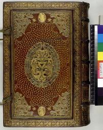 | Keywords: Der Stat Nurmberg verneute Reformation. 1564. - Lower cover (c48h5).jpg Style Centre and cornerpiece Semis background of small tools Medallion or plaquette; Caption Lower cover; Colour Brown; Edge Gilt gauffered and painted exhibition history Decorative Technique Painted Tooled in blind Tooled in gold Sunk panel; Cover Material Calf The arms of the Emperor Maximilian II and of the city of Nuremberg are impressed in colour on the fore edge Medallions of 4 female allegorical figures including Fides and Justicia tooled on covers Traces of 2 pairs of ribbon ties Heavily rounded spine tooled in gold with 5 raised double bands In ms notes on upper flyleaf German armorial bookplate not identified on the upper pastedown Edges of boards and turn ins tooled in gold object history Text 1566; Frankfurt; Maximillian II Holy Roman Emperor 1527-1576 object type Cc-zero place of creation Binding Germany place of discovery Unspecified British Library image http //www bl uk/catalogues/bookbindings/LargeImage aspx RecordId 020-000007800 ImageId ImageId 43505 Copyright BL Der Stat Nurmberg verneute Reformation 1564 Uploaded with GWToolset Der Stat Nurmberg verneute Reformation 1564 - Lower cover c48h5 http //www webarchive org uk/bldatasets/bindings/8320_4 jpg Bookbinding 16th-century bookbinding British Library Bookbindings |