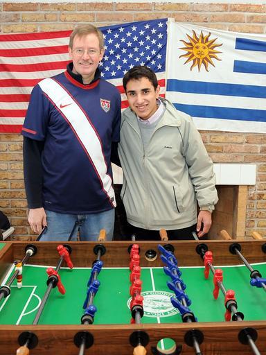 | Keywords: visdip embajador david nelson embajadordavidnelson us embassy montevideo usembassymontevideo foosball futbolito El Embajador de Estados Unidos en Uruguay, David Nelson recibió en su residencia a los participantes del Desafío Futbolito, un concurso realizado a través de la página de la embajada en Facebook. En esta foto, el embajador David Nelson junto a Juan Andrés González, un participante del concurso que realizó un viaje de 6 horas en ómnibus desde su ciudad Rivera exclusivamente para conocerlo. [US Embassy Photo by Pablo Castro] El Embajador de Estados Unidos en Uruguay, David Nelson recibió en su residencia a los participantes del Desafío Futbolito, un concurso realizado a través de la página de la embajada en Facebook. En esta foto, el embajador David Nelson junto a Juan Andrés González, un participante del concurso que realizó un viaje de 6 horas en ómnibus desde su ciudad Rivera exclusivamente para conocerlo. [US Embassy Photo by Pablo Castro] |