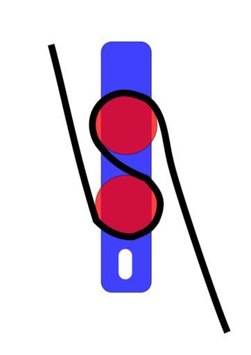 Keywords: DescendeurPoulies.svg en Fixed pulley descender - working principle fr Schéma de descendeur spéléo à poulie it Schema di discensore a pulegge fisse Own 2008-05-21 user xofc Caving equipment