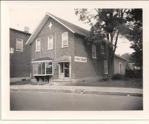 | Keywords: libraries 1970s photo border building architecture Photograph of the exterior of Deseronto Public Library when it was situated at 309 Main Street, Deseronto, Ontario. The library moved to this location in 1931 after a fire at the former library, which was above the Town Hall in Edmon Street (now the Fire Hall). It remained in this building until 2001, when the library moved to 358 Main Street. From 'Library - Deseronto' file held in Deseronto Archives. Photograph of the exterior of Deseronto Public Library when it was situated at 309 Main Street, Deseronto, Ontario. The library moved to this location in 1931 after a fire at the former library, which was above the Town Hall in Edmon Street (now the Fire Hall). It remained in this building until 2001, when the library moved to 358 Main Street. From 'Library - Deseronto' file held in Deseronto Archives. |