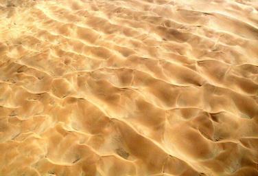 Keywords: desert sand light and shade rippled sand dunes aerial shot golden sand colors highlighted