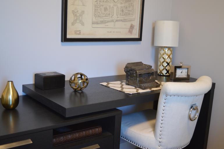 Keywords: desk chair home office interior room home house furniture residential residence decor design modern