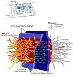 | Keywords: Desmosome cell junction de.svg de Illustration eines Desmosoms einer Zellverbindung tierischer Zellen 2012-03-07 http //de wikipedia org/wiki/Datei Desmosome_cell_junction_en svg Mariana Ruiz user LadyofHats translated by Christian Becker user Clad in Sky Custom license marker 2012 03 07 Uploaded with UploadWizard Cell junctions Desmosomes |