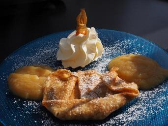 Keywords: dessert sweet dish pancake applesauce delicious sweet cream icing sugar