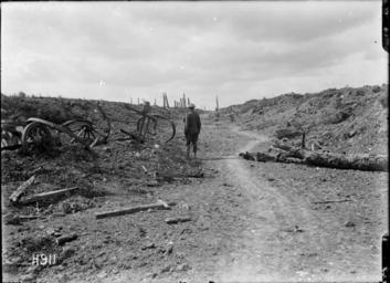 | Keywords: blackandwhite monochrome outdoor photo border black and white A New Zealand soldier inspects destroyed German transport on a dirt road towards the French village of Serre. Broken wagons and twisted wheels lay to one side. Photograph taken 20 August 1918 by Henry Armytage Sanders. Inscriptions: Inscribed - Photographer's title on negative -bottom left: H911. Quantity: 1 b&w original negative(s). Physical Description: Dry plate glass negative 4 x 5 inches Destroyed German transport towards Serre, World War I. Royal New Zealand Returned and Services' Association :New Zealand official negatives, World War 1914-1918. Ref: 1/2-013487-G. Alexander Turnbull Library, Wellington, New Zealand. natlib.govt.nz/records/23209973 A New Zealand soldier inspects destroyed German transport on a dirt road towards the French village of Serre. Broken wagons and twisted wheels lay to one side. Photograph taken 20 August 1918 by Henry Armytage Sanders. Inscriptions: Inscribed - Photographer's title on negative -bottom left: H911. Quantity: 1 b&w original negative(s). Physical Description: Dry plate glass negative 4 x 5 inches Destroyed German transport towards Serre, World War I. Royal New Zealand Returned and Services' Association :New Zealand official negatives, World War 1914-1918. Ref: 1/2-013487-G. Alexander Turnbull Library, Wellington, New Zealand. natlib.govt.nz/records/23209973 |