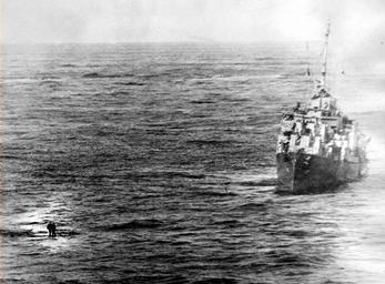 | Keywords: Destroyer rescues men from USS Enterprise (CV-6) in May 1945.jpg A U S Navy Allen M Sumner-class destroyer rescues sailors standing on a section of an aircraft elevator blown off the aircraft carrier USS Enterprise CV-6 after the ship was hit by a kamikaze off Kyushu Japan http //collections naval aviation museum/emuwebdoncoms/pages/doncoms/AdvQuery php U S Navy National Museum of Naval Aviation photo No http //collections naval aviation museum/emuwebdoncoms/pages/doncoms/Display php irn 21120 QueryPage 2Femuwebdoncoms 2Fpages 2Fdoncoms 2FAdvQuery php 1983 046 010 150 1945-05-14 U S Navy the image is part of an album of photographs collected by Captain Carlos W Wieber during his command of the aircraft carrier USS Essex CV-9 during 1944-1945 PD-USGov-Military-Navy Aboard USS Enterprise CV-6 Allen M Sumner class destroyers Pacific War in May 1945 Kamikaze |