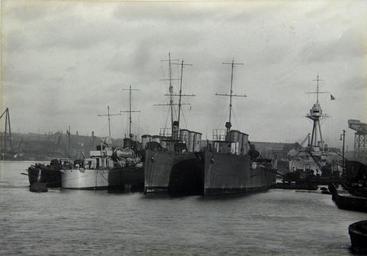 | Keywords: ww1 royal navy royalnavy first world war firstworldwar hawthorn leslie hawthornleslie shipbuilding hebburn hms marksman hmsmarksman hms talisman hmstalisman hms termagant hmstermagant destroyer torpedo boat destroyer torpedoboatdestroyer shipyard maritime heritage maritimeheritage industry black and white photograph blackandwhitephotograph digital image digitalimage destroyers moored 5 november 1915 5november1915 hawthorn leslie warships hawthornlesliewarships battle of jutland battleofjutland wartime naval military industrial heritage industrialheritage abstract warships constuction structure deck rail sky cloud grain mark float rope bank buildings mast cylinder flag pole roof wall vessel unusual fascinating majestic outdoor waterfront water black and white HMS Marksman, HMS Talisman and HMS Termagant moored at the Hawthorn Leslie shipyard, Hebburn, 5 November 1915 (TWAM ref. 4471/3). HMS Termagant took part in the Battle of Jutland with the Royal Navy's 13th Destroyer Flotilla. The shipyard of R. & W. Hawthorn Leslie at Hebburn built many fine warships. During the First World War the firm built 2 light cruisers, 3 destroyer leaders and 25 torpedo boat destroyers. The firm also built machinery and boilers for 2 battleships, and a further 3 light cruisers. These and other warships built by Hawthorn Leslie before the War, are remembered in this set. There are remarkable images of warships under construction at Hebburn, as well as fascinating shots of the people who attended the launches. The set also contains majestic views of the ships at sea. The images are not only a testimony to the skill of those who designed and built these ships but also to the courage of those who sailed in them. (Copyright) We're happy for you to share these digital images within the spirit of The Commons. Please cite 'Tyne & Wear Archives & Museums' when reusing. Certain restrictions on high quality reproductions and commercial use of the original physical version apply though; if you're unsure please email archives@twmuseums.org.uk HMS Marksman, HMS Talisman and HMS Termagant moored at the Hawthorn Leslie shipyard, Hebburn, 5 November 1915 (TWAM ref. 4471/3). HMS Termagant took part in the Battle of Jutland with the Royal Navy's 13th Destroyer Flotilla. The shipyard of R. & W. Hawthorn Leslie at Hebburn built many fine warships. During the First World War the firm built 2 light cruisers, 3 destroyer leaders and 25 torpedo boat destroyers. The firm also built machinery and boilers for 2 battleships, and a further 3 light cruisers. These and other warships built by Hawthorn Leslie before the War, are remembered in this set. There are remarkable images of warships under construction at Hebburn, as well as fascinating shots of the people who attended the launches. The set also contains majestic views of the ships at sea. The images are not only a testimony to the skill of those who designed and built these ships but also to the courage of those who sailed in them. (Copyright) We're happy for you to share these digital images within the spirit of The Commons. Please cite 'Tyne & Wear Archives & Museums' when reusing. Certain restrictions on high quality reproductions and commercial use of the original physical version apply though; if you're unsure please email archives@twmuseums.org.uk |