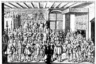 | Keywords: Det store bilager 1.jpg Christian IV i riddersalen på Københavns slott På dagen for den udvalgte prins Christians bryllyp den 5 oktober 1634 ble 12 adelsmenn slått til riddere i den gamle riddersalen på Københavns slott Stikket er en samtidig skildring og er den eneste gjengivelse av interiøret på Københavns slott som man kjenner til Christian IV of Denmark in The great hall at Copenhagen Castle on the 5 th of October 1634 author 1634 Scanned from the book Memoirer og breve udgivne af Julius Clausen og P Fr Rist Det store bilager i Kjøbenhavn 1634 med Charles Ogier Det store bilager i Kjøbenhavn 1634 Gyldendalske boghandel Nordisk forlag 1914 Other versions Copenhagen Castle Christian IV of Denmark Christian Prince Elect of Denmark |