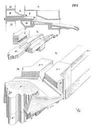 | Keywords: Detail.contre.fort.abside.Saint.Urbain.Troyes.png Prenons donc d'abord toute la partie du contre-fort comprise entre H et O c'est-à-dire le plafond de la galerie et son linteau reliant la pile intérieure au contre-fort l'enchâssement de claires-voies et l'écoulement des eaux sur ce point En A 104 on voit la coupe prise dans l'axe du contre-fort et de la pile B est la gargouille rejetant à l'extérieur les eaux recueillies sur le passage G c'est-à-dire non-seulement la pluie tombant verticalement sur ce dallage ce qui est peu de chose mais celle fouettant contre les vitraux Plans et relevés de la basilique Saint-Urbain de Troyes Buttresses in France Drawings of buttresses |