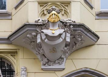 | Keywords: Detail facade, Aachen, Germany-2.jpg en Detail of a facade Münsterplatz Aachen Germany fr Détail d'une façade Münsterplatz Aix-la-Chapelle Allemagne 2013-12-21 for photograph own Jebulon 50 774398 6 083575 cc-zero QualityImage Architectural elements in Aachen Gothic revival architecture Helmets in art Münsterplatz Aachen Necklaces in art Oriel windows in North Rhine-Westphalia Yellow facades Quality images by Jebulon Uploaded with UploadWizard | ||||