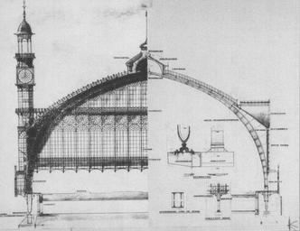 | Keywords: Detailed construction sketch; cross-section of the railway hall (platform roof) of the "Antwerp Central" (Antwerpen-Centraal) railway station.tif en Detailed construction sketch; cross-section of the railway hall platform roof of the Antwerp Central Dutch Antwerpen-Centraal railway station On the left side is the side of the street Pelikaanstraat en on the right side is the side of the Antwerp Zoo A lot of attention was paid to the foundation of the arches blocks of 3 by 4 5 meters at a depth of three meters below the street level The formwork a frame consisting of vertically placed oak beams also functioned as a reinforcement nl Dwarsdoorsnede van de perronoverkapping links de kant van de Pelikaanstraat en rechts de kant van de ZOO Antwerpen Veel aandacht werd besteed aan de funderingen van de bogen blokken van 3 op 4 5 meter op drie meter diepte onder het straatpeil De bekisting bestaande uit een kader van verticale eiken balken diende ook als versteviging 1895-02 Wagemans Stan Centraal Station spoorwegkathedraal Antwerpen op de rails toen en nu Davidsfonds Uitgeverij nv Leuven 2011 Antwerpen-Centraal de spoorhal Unknown to me but the sketch must have been made by either ClĂ©ment Van Bogaert 1865 “ 1937 or by Louis Delacenserie 1838 “1909 Both of these men died more than 70 years ago This sketch must have been published in or before February 1895 which is when the two men proposed their definitive plans for the renewal of the Antwerp Central railway station which were approved other versions PD-old-70 PD-US Train stations Rail transport staff Antwerp in the 1890s |
