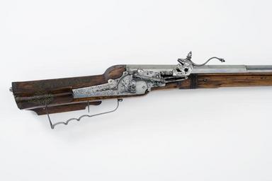 | Keywords: Detalj hjullåsstudsare - Livrustkammaren - 73903.jpg Pipa med åttsidig kammare räfflad med 8 raka räfflor och skålade bommar Kort rektangulärt svansskruvblad <br/>Fästning Tre häften Pipan fäst med en krysskruv underifrån samt tre pipstift av stål <br/><br/>Hjullås med plant låsbleck av stål Segmenthjul i form av en kvarts cirkel som spänns med ett svarvat grepp fäst med två skruvar på en rak arm på armen en genombruten graverad platta i form av ett lejon på axeln en svarvad ten På låsbleckets bakre del graverade rankornament Fängpanna med konturerad framkant låg rak krutskärm lock med graverad räv s-formigt svängt fingergrepp framtill en genombruten flik en bit saknas Ifrån fängpannan en studel för segmenthjulet fäst med en skruv kl 10 långt svarvat löv Hane med balusterformig kropp med ett fasetterat mittparti ringformig hanhals lös överkäke med svarvad käkskruv och delvis fyrsidigt huvud s-formigt fingergrepp med kulformig avslutning På hanhals och käkar graverat odjursmotiv På hanhalsens skärm en ängel Hanfjäder med delvis fasade kanter graverad dekor skålning i vinkeln Hanstudel med svarvad docka och en bakåtriktad solfjädersformig figur På låsets insida är slagfjäderns nedre del graverad hela slagfjädern blånerad Under fängpannelockets arm en stämpel i form av en krona <br/>Fästning Två låsskruvar <br/>Rak avtryckare <br/><br/>Helstock av trä med kolv av tysk typ med kolvlåda och snidad bladvolut på vingen profilerad framstock Beslag och inläggningar av graverad mässing mässingstråd och mässingspunkter runt kolvens bakre del på kolvrygg och låssida runt svansskruvblad och låsskruvar Bakplåt av mässing med stödkula av stål På kolvvingen ett 12 mm brett mässingsband med gravyr i form av rankverk med ormhuvuden På anslaget ett runt fält av mässingsrankor med i mitten en sittande rovfågel Kantlister av mässing Kolvlådelock med likadan dekor som kolven i övrigt Två blomformiga låsskruvbrickor Överrörka och näsband i ett stycke i form av en ca 120 mm bred mässingsplåt Varbygel med 3 fingerlägen och två fästskruvar <br/><br/>Tillbehör <br/>Laddstock av trä l 983 mm i ena änden skodd med horn l 27 mm original caption detalj hjullåsstudsare - LRK 3200<br/> Nyckelord Hjullåsstudsare Föremålsbild ca other date - 1625 1650 steel e127 - eldvapen - pipa lås och stockbeslag material stål - wood e3 - eldvapen - stock material trä - brass e78 - eldvapen - stockbeslag och stockdekor material mässing size mm 1275 size mm 975 pipa size mm 129 mm 8300 LRK Basutställning place of origin original filename lm_dig2117 39777 inventory number LRK 3200 73903 CC-BY-SA Göran Schmidt <gallery caption Different images of same object > File Detalj hjullåsstudsare v sida - Livrustkammaren - 82462 jpg </gallery> Göran Schmidt Musket images from Livrustkammaren color images Wheellock musket images from Livrustkammaren Media contributed by LSH dim-with multiple size templates Media contributed by LSH dim-with weird units weight in mm Media contributed by LSH unmatched keyword Color images from Livrustkammaren Media contributed by LSH 2013-10 |