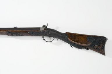 | Keywords: Detalj slaglåsstudsare, v sida - Livrustkammaren - 48224.jpg Åttsidig brunerad räfflad pipa med trumf 8 räfflor högerräffling Pipan förlängd med ett obrunerat parti tvärt avskuret svansskruvblad graverad ranka På h sida vinge med tändhattsnippel På pipans översida graverad text under Bataillen vid Wiais och Helsinge d 28/9 1808 har Befälhafvaren för Svenska Finska Gardiet Conr Åkerhjelm tagit detta gevär från en rysk Jägare vid Regem n o 1 På kammarens v sida graverad text C Å 28/9 1808 på h sida C M Af R 1825 <br/>Riktmedel Klaffsikte av blånerat stål stolpkorn av mässing båda inlaxade <br/>Fästning Pipan fäst med blånerad krysskruv samt två engelska pipstift och däremellan rembygelns skruv <br/><br/>Slaglås av stål med välvt låsbleck och graverade bladrankor på hane och låsbleck bakåtliggande slagfjäder Harmynt slaghuvud nätskuret tumgrepp På låsets insida är slagfjäder stång och stångarm vända åt samma håll <br/>Fästning En låsskruv med åttsidig bricka <br/>Svagt böjd avtryckare Avtryckarbleck framtill avslutat med en urneformig platta med blad <br/><br/>Brun helstock av trä kolv av fransk typ med kindstöd och kolvlåda kolvhalsen nätskuren Rik snidad dekor på kolvens undersida ett fiskhuvud och på framstocken en lejonmaskaron båda med inlagda pärlemorögon samt snidade bladornament Bakom kindstödet en liggande hjort På kolvens undersida en oval vitmetall-plåt silver graverad med nr 1 Kolvlådelock med snidat tumgrepp med rund blomma locket öppnas genom att trycka på blommans mitt Näsband av horn övriga beslag av stål Bakplåt med en spetsig bladgraverad flik på kolvryggen Två runda rörkor Varbygel med graverade rankor fäst på avtryckarblecket En u-formig rembygel vid bakre rörka rund knapp bakom varbygeln <br/><br/>Tillbehör <br/>Laddstock av mässing l 663 mm original caption detalj slaglåsstudsare - LRK 3669 v sida<br/> Nyckelord Studsare Gustav V Föremålsbild - other date ca 1800 ca 1850 wood e3 - eldvapen - stock material trä - steel e1247 - eldvapen - pipa lås riktmedel och beslag material stål - mother-of-pearl e8 - eldvapen - stockdekor material pärlemor - brass e4 - eldvapen - riktmedel material mässing g 4190 size mm 670 pipa size mm 1080 LRK Oscar II av Sverige -Norge Carl Magnus af Robson bergsråd Karl XV av Sverige-Norge Gustaf V av Sverige Conrad Reinhold Åkerhielm överste place of origin original filename lm_dig2163 40201 inventory number LRK 3669 48224 CC-BY-SA Göran Schmidt <gallery caption Different images of same object > File Detalj slaglåsstudsare - Livrustkammaren - 22541 jpg File Detalj stockdekor slaglåsstudsare - Livrustkammaren - 39663 jpg File Detalj stockdekor slaglåsstudsare - Livrustkammaren - 48221 jpg File Detalj slaglåsstudsare - Livrustkammaren - 39666 jpg File Detalj slaglåsstudsare - Livrustkammaren - 31103 jpg File Detalj stockdekor slaglåsstudsare - Livrustkammaren - 65343 jpg File Detalj stockdekor slaglåsstudsare - Livrustkammaren - 56782 jpg </gallery> Göran Schmidt Gustav V of Sweden Musket images from Livrustkammaren color images Flintlock muskets images from Livrustkammaren Media contributed by LSH unmatched material Media contributed by LSH dim-with multiple size templates Media contributed by LSH unmatched keyword Color images from Livrustkammaren Percussion muskets images from Livrustkammaren Media contributed by LSH 2013-10 |