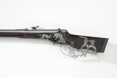 | Keywords: Detalj snaplåsstudsare, v sida - Livrustkammaren - 56785.jpg Åttsidig pipa av stål åtta räfflor Graverad dekor i form av blad på kammaren och kring mynningen På kammaren en rund mässingsstämpel med I R ovanför ett tredubbelt treblad Stöckelnr 3565 vägl 1921 205 <br/>Riktmedel Klaffsikte av stål med framförliggande profilerad gren med ekollon Stolpkorn av mässing <br/>Fästning <br/><br/>Snapplås av baltisk typ ändrat från hjullås Plant låsbleck av tysk typ bakåt avsmalnande i två fall Graverad dekor i form av hjortjakt Böjd hane med lös pålagd överkäke med konturerade sidor Hjulaxeln igensatt med stålpropp med runt huvud Den ursprungliga hanen ändrad till eldstål med oval genombruten hals Elståls-hanfjädern täckt av platta graverad med krigare med hillebard Genombruten studel över eldstålsfoten Invändigt är hjulstudeln liksom kedjelänken avlägsnad <br/>Fästning <br/>Rak avtryckare som verkar i vertikalled <br/><br/>Brun glanspolerad helstock av valnöt med kolv av tysk typ Inläggningar på kolven i form av stålband och graverade stålplattor Bakplåt av stål Kolvlådelock av trä med inläggningar i form av en kvinna hare och räv På anslaget två kämpande män med svärd Två låsskruvbrickor i form av en hund och en björn På stockens undersida framför varbygeln inlagt en hjort Näsband och genombruten rörka av stål Varbygel med tre fingerlägen kraftig båge framtill genombrutna armar <br/><br/>Tillbehör <br/>Laddstock av mässing original caption detalj snaplåsstudsare - LRK 6266 v sida<br/> Nyckelord Studsare Jakt Vapen Föremålsbild ca 1680 walnut e3 - eldvapen - stock material valnöt - brass e9 - eldvapen - laddstock material mässing - steel e12478 - eldvapen - pipa lås riktmedel beslag och stockdekor material stål - brass e45 - eldvapen - riktmedel och pipdekor material mässing size mm 125 g 5645 m instickspipa size mm 810 pipa size mm 1070 LRK Snapphanen var mans bössa 1984 Snapphanen 1987 Basutställning Nordiska vapenformer I R över tredubbelt treblad Stöckelnr 3565 1921 205 anv e1 - eldvapen - pipa; anonym pipsmed I R över tredubbelt treblad Stöckelnr 3565 1921 205 anv e1 - eldvapen - pipa; anonym pipsmed place of origin original filename lm_dig2164 42805 inventory number LRK 6266 56785 CC-BY-SA Göran Schmidt <gallery caption Different images of same object > File Detalj snapplåsstudsare - Livrustkammaren - 65346 jpg </gallery> Göran Schmidt Musket images from Livrustkammaren color images Flintlock muskets images from Livrustkammaren Media contributed by LSH dim-with multiple size templates Media contributed by LSH unmatched creator Media contributed by LSH unmatched keyword Color images from Livrustkammaren Media contributed by LSH 2013-10 |