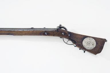 | Keywords: Detalj snapplåslodbössa, v sida - Livrustkammaren - 22538.jpg Åttsidig pipa med räfflat lopp 8 räfflor bombredd ca 2 mm Pipan grov i noten Stämplad på översidan tre stjärnor PS med två kulor under S <br/>Riktmedel Siktskåra inlaxat kulissikte av stål inlaxat stolpkorn av mässing <br/>Fästning Ett häfte två bortslagna Pipan fäst i noten med krysskruv underifrån främre varbygelskruven samt ett urspr två pipstift av trä <br/><br/>Snapplås lägglås av svensk typ med plant låsbleck böjd hane med lös överkäke och något längre underkäke Rektangulär rundad fängpanna med vridbart lock Platt fängpannelock smalt rundat eldstål böjd arm med litet utskott Helspänn på hanens häl mot stångtanden <br/>Fästning Två låsskruvar <br/>Rak avtryckare <br/><br/>Brun helstock med spår av svart färg på framstocken Kolv av svensk typ kolvl 181 mm Med kolvlåda på anslaget runt beslag av stål med koncentrisk dekor med fyra nitar snidad bladform på underkanten Slät bakplåt av stål med rund kolvkula Snidad valk kring laddstocksskåran Näsband av stål två profilerade rörkor Låg varbygel med tre fingerlägen främre fäst med skruv krysskruven <br/><br/>Tillbehör <br/>Laddstock av trä l 542 mm avbruten med skoning av horn l 18 mm original caption detalj snapplåslodbössa - LRK 3020 v sida<br/> Nyckelord Snapplåslodbössa Föremålsbild early other date century 17 wood e3 - eldvapen - stock material trä - steel e1247 - eldvapen - pipa lås riktmedel och beslag material stål - brass e4 - eldvapen - riktmedel material mässing size mm 128 g 2450 size mm 644 pipa size mm 890 LRK P S Stöckelnr 4364 4369-4370 4374-4375 anv e1 - eldvapen - pipa; anonym pipsmed place of origin SE original filename lm_dig2101 39621 inventory number LRK 3020 22538 CC-BY-SA Göran Schmidt <gallery caption Different images of same object > File Lodbössa med snapplås lägglås infjäderslås trol - Livrustkammaren - 60257 tif File Detalj snapplåslodbössa - Livrustkammaren - 13975 jpg </gallery> Göran Schmidt Musket images from Livrustkammaren color images Flintlock muskets images from Livrustkammaren Media contributed by LSH dim-with multiple size templates Media contributed by LSH unmatched keyword Color images from Livrustkammaren Media contributed by LSH 2013-10 |
