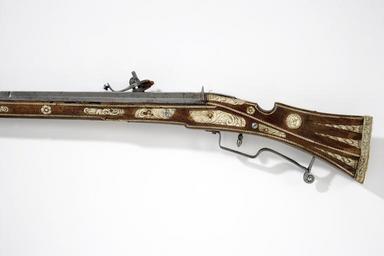 | Keywords: Detalj stock hjullåsmusköt, v sida - Livrustkammaren - 66295.jpg Slätborrad rund pipa av stål med åttsidig kammare och två band på mitten av pipan Mynningen med trumf med tre svarvade ringar <br/>Riktmedel Skärm med siktskåra vid pipbasen Knoppkorn av mässing <br/>Fästning Fyra häften Pipan fäst med krysskruv underifrån varbygelskruven samt fyra pipstift av trä <br/><br/>Hjullås med plant låsbleck av stål tysk typ l 215 mm bladformig bakspets Graverad dekor över hela blecket naturscen sjövik med båtar Diana och hjort Upphöjd plan hjulkapsel med graverade trofégrupper nedanför hjulaxeln tre hål Fängpanna med avtagna nederhörn tungformig bakåtböjd eldskärm Fängpannelock med fast arm Hane med lös överkäke med graverad skärm krigare i antik rustning fyrkantigt käkskruvhuvud C-formigt uppåtböjt fingergrepp med svarvad knopp Hanhals med graverad krigare balusterformig hankropp med svarvad fot Hanstudel i form av en graverad skärm trofégrupp Bladformigt fjäderlöv <br/>Fästning Två låsskruvar <br/>Avtryckare med kraftig ollonliknande ände <br/><br/>Brun helstock med muskötkolv nedskuret tumläge Beslag och inläggningar av graverat ben kantlister och avlånga inläggningar omväxlande med graverade rullverk Bakplåt med sköld rullverk och bladdekor Utdragna trianglar på kolvsidorna på anslagssidan en rund platta med ett manshuvud ihjälm Laddstocksrännan täckt av benplatta med vriden banddekor och sköld överrörka och näsband med bladdekor Varbygel av stål bandformig s-formig svängd på bygeln fyra hål på bakre armen ett hål bakre stolpen spiralformigt upprullad <br/><br/>Tillbehör <br/>Laddstock l 1100 mm graverad benskoning med bladdekor l 65 mm original caption detalj stock hjullåsmusköt - LRK 3183 v sida early other date century 17 steel e1247 - eldvapen - pipa lås riktmedel och beslag material stål - brass e4 - eldvapen - riktmedel material mässing - wood e3 - eldvapen - stock material trä - bone e78 - eldvapen - stockbeslag och stockdekor material ben size mm 1470 size mm 1120 pipa size mm 185 g 6050 LRK Carl Axel Fleetwood friherre Bernhard Axel Fleetwood friherre Gustava Charlotta Granath f Fleetwood Friherrinna place of origin original filename lm_dig2511 39760 inventory number LRK 3183 66295 CC-BY-SA Göran Schmidt <gallery caption Different images of same object > File Hjullåsmusköt 1600-talets början - Livrustkammaren - 60301 tif File Detalj lås hjullåsmusköt - Livrustkammaren - 74857 jpg File Detalj lås-stock hjullåsmusköt - Livrustkammaren - 57734 jpg File Hjullåsmusköt 1600-talets början - Livrustkammaren - 43181 tif File Hjullåsmusköt 1600-talets början - Livrustkammaren - 68864 tif </gallery> Göran Schmidt Musket images from Livrustkammaren color images Media contributed by LSH dim-with multiple size templates Color images from Livrustkammaren Media contributed by LSH 2013-10 |