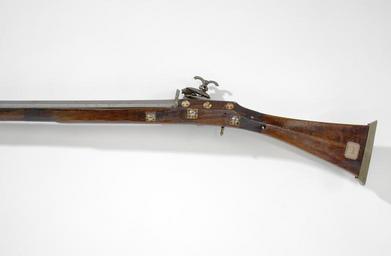 | Keywords: Detalj stock snapplåsbössa, v sida - Livrustkammaren - 23494.jpg Åttsidig slätborrad pipa av stål Svansskruvbladet belagt med tunn graverad mässingsplåt <br/>Fästning Två breda pipband av tunn mässingsplåt med svagt synlig pressad dekor <br/>Riktmedel profilerad vulst av mässing baktill med siktskåra kvadratiskt stolpkorn av mässing <br/><br/>Arabiskt snapplås romana-typ med plant låsbleck belagt med tunn slät mässingsplåt Varhake studel och eldstålsfjäder belagda med graverade och etsade förgyllda silverbleck med dekor i form av bladrankor Käkskruv nedtill vidgad med fyra genomgående hål upptill vingformad av mässing Käkarna och eldstålet med etsad och graverad rankdekor <br/>Fästning <br/><br/>Halvstock av polerad valnöt Kolv baktill vidgad med mittås och rektangulärt tvärsnitt Bakplåt av mässing med bred kant Stocken med kvadratisk och blomformiga graverade beninläggningar På var sida om kolvnacken tre runda beninläggningar Tre rektangulära låsskruvsbrickor Profilerad kort avtryckare av mässing <br/><br/>Tillbehör <br/>Laddstock av trä 820 mm lång med stålskoning och krats original caption detalj stock snapplåsbössa - LRK 7677 v sida steel - brass - silver - walnut - bone size mm 1682 size mm 1309 pipa size mm 162 g 3440 LRK Basutställning place of origin original filename lm_dig2516 44284 inventory number LRK 7677 23494 CC-BY-SA Göran Schmidt <gallery caption Different images of same object > File Detalj lås-stock snapplåsbössa - Livrustkammaren - 32056 jpg </gallery> Göran Schmidt Musket images from Livrustkammaren color images Flintlock muskets images from Livrustkammaren Media contributed by LSH dim-with multiple size templates Color images from Livrustkammaren Media contributed by LSH 2013-10 |