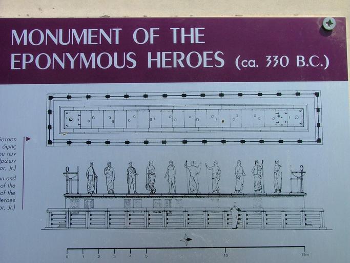 Keywords: Detalle Plano Monumento Heroes Eponimos.JPG Detalle del plano del Monumento de los héroes epónimos y dibujo de la reconstrucción Ágora de Atenas Own 2007-08-20 Dorieo Monument of the Eponymous Heroes