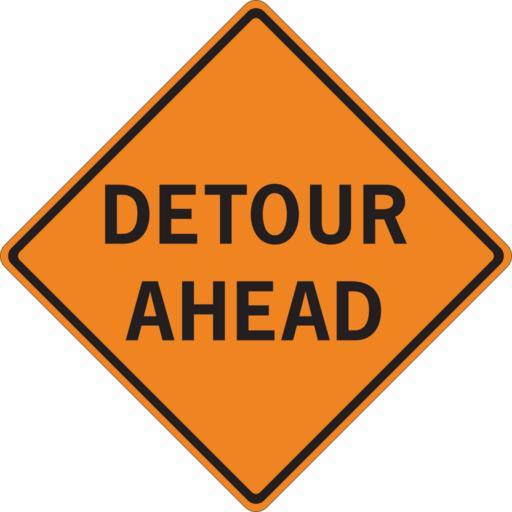 Keywords: detour ahead sign warning information signage roadsign motorists caution traffic alert route